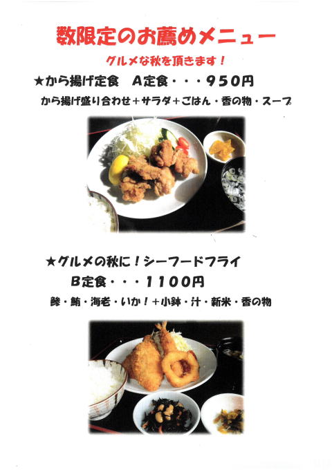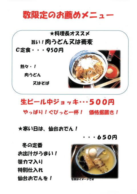*このほかに、季節のおすすめメニューが有ります